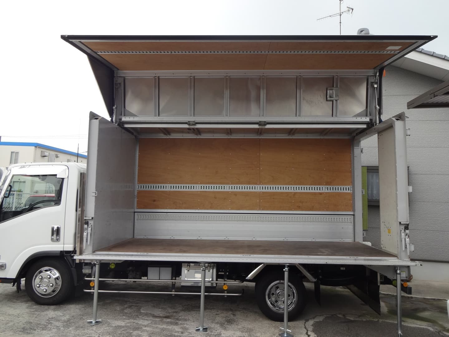 学校行事、各種イベントなど、設置場所までの通路が狭く、仮設ステージの設置が困難な場所や、大型車ほどの広さは必要ないなどの場合にご使用いただけます。